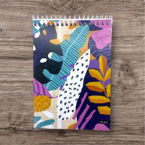 de 50 hojas lisas , con tapa impresa en papel satinado y contratapa de cartón.